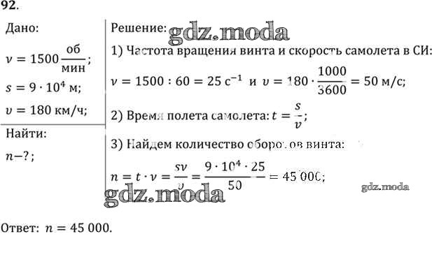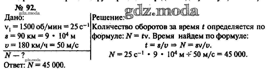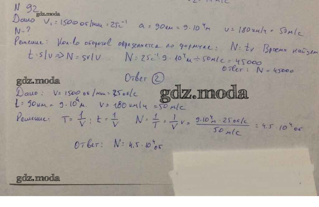 ОТВЕТ на задание № 92 Задачник по Физике 10-11 класс Рымкевич УМК
