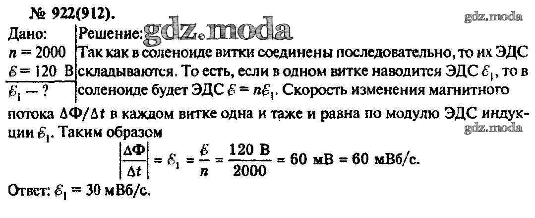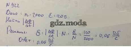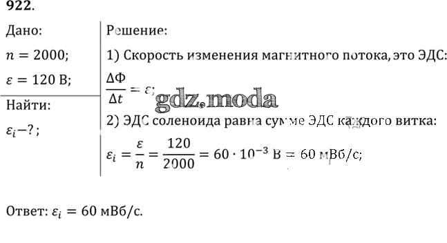 ОТВЕТ на задание № 922 Задачник по Физике 10-11 класс Рымкевич УМК