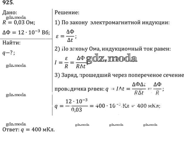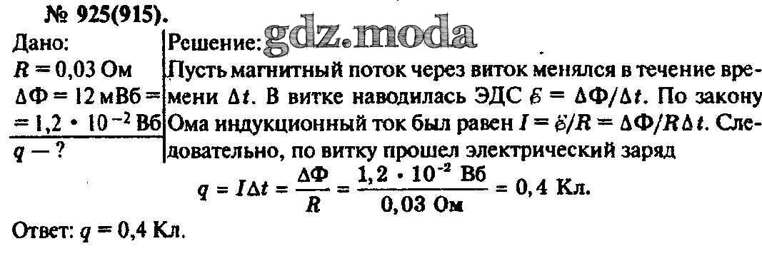 ОТВЕТ на задание № 925 Задачник по Физике 10-11 класс Рымкевич УМК