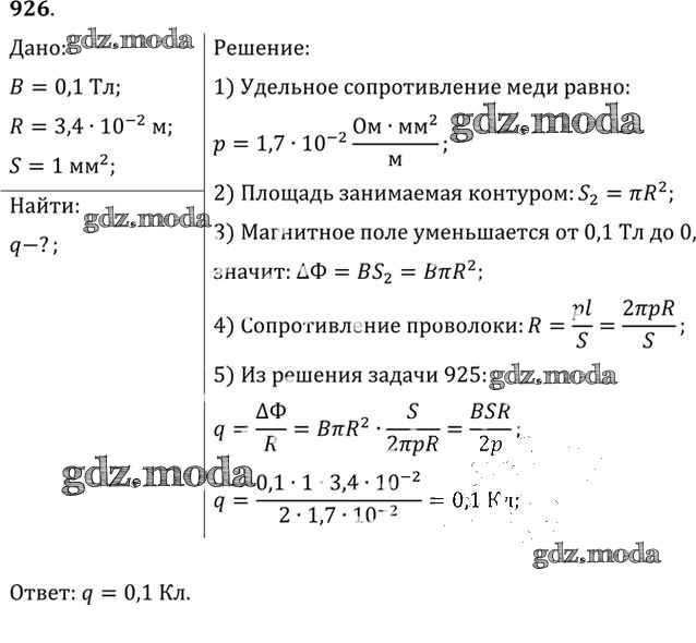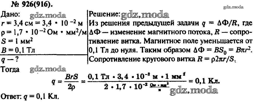 ОТВЕТ на задание № 926 Задачник по Физике 10-11 класс Рымкевич УМК