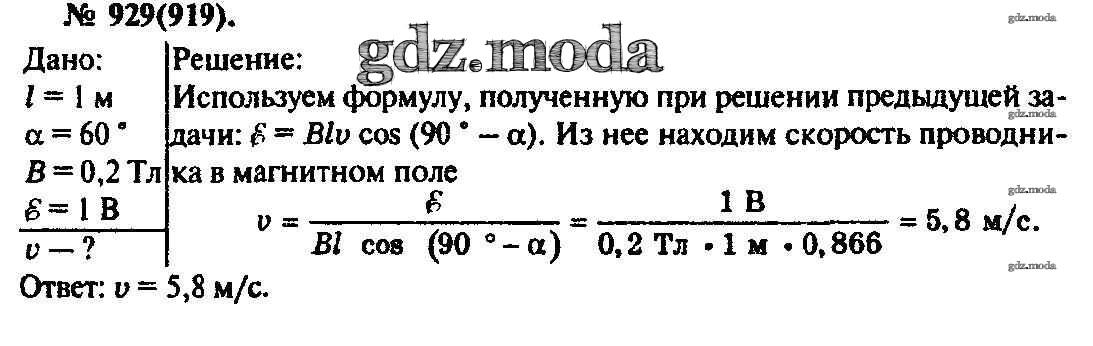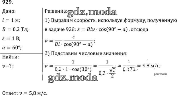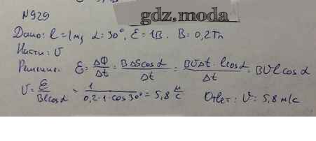 ОТВЕТ на задание № 929 Задачник по Физике 10-11 класс Рымкевич УМК