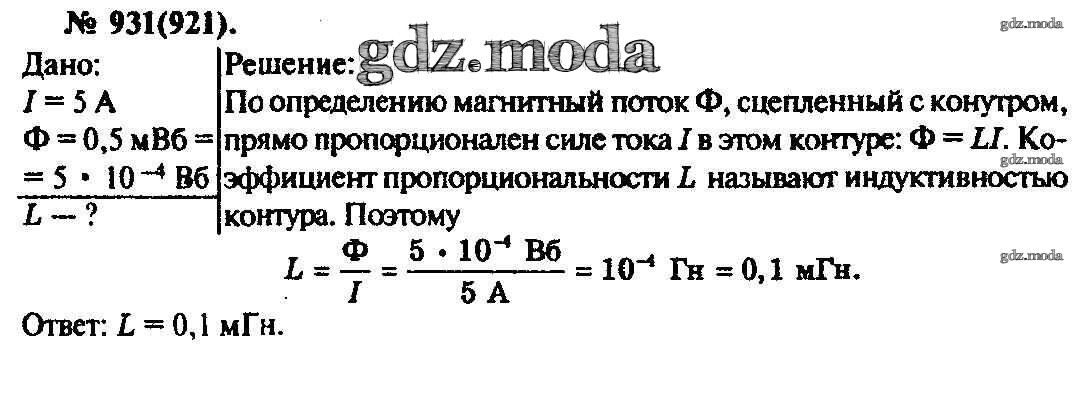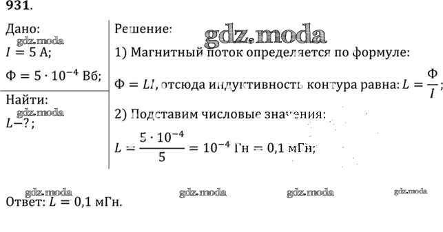 ОТВЕТ на задание № 931 Задачник по Физике 10-11 класс Рымкевич УМК