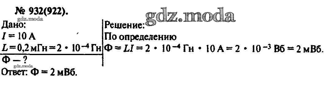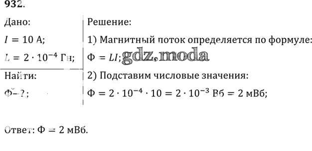 ОТВЕТ на задание № 932 Задачник по Физике 10-11 класс Рымкевич УМК