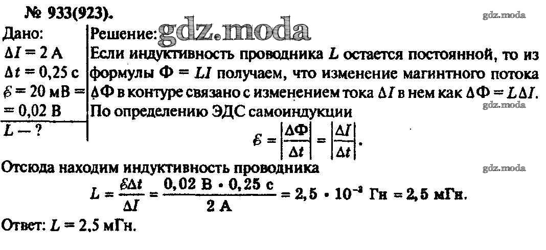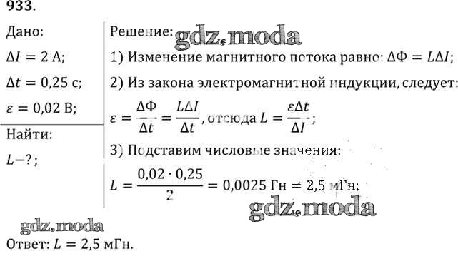 ОТВЕТ на задание № 933 Задачник по Физике 10-11 класс Рымкевич УМК