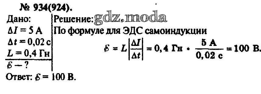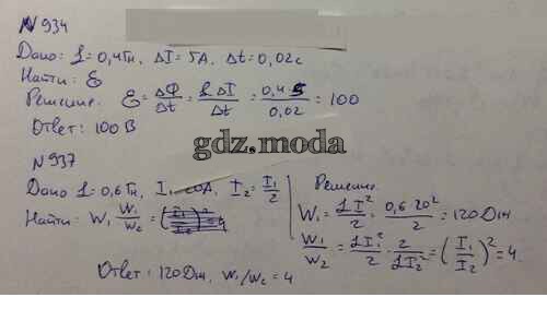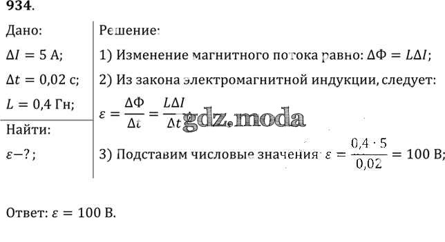 ОТВЕТ на задание № 934 Задачник по Физике 10-11 класс Рымкевич УМК