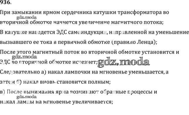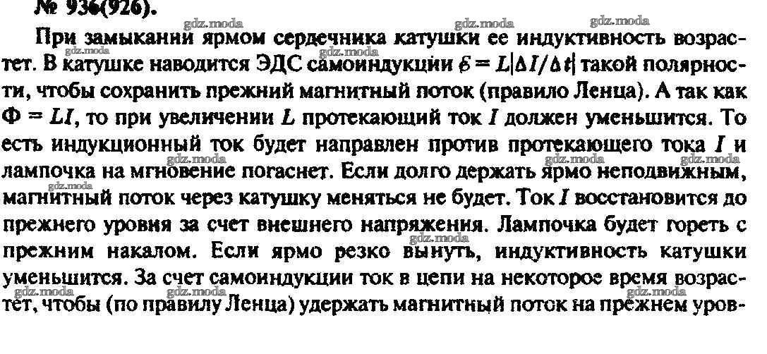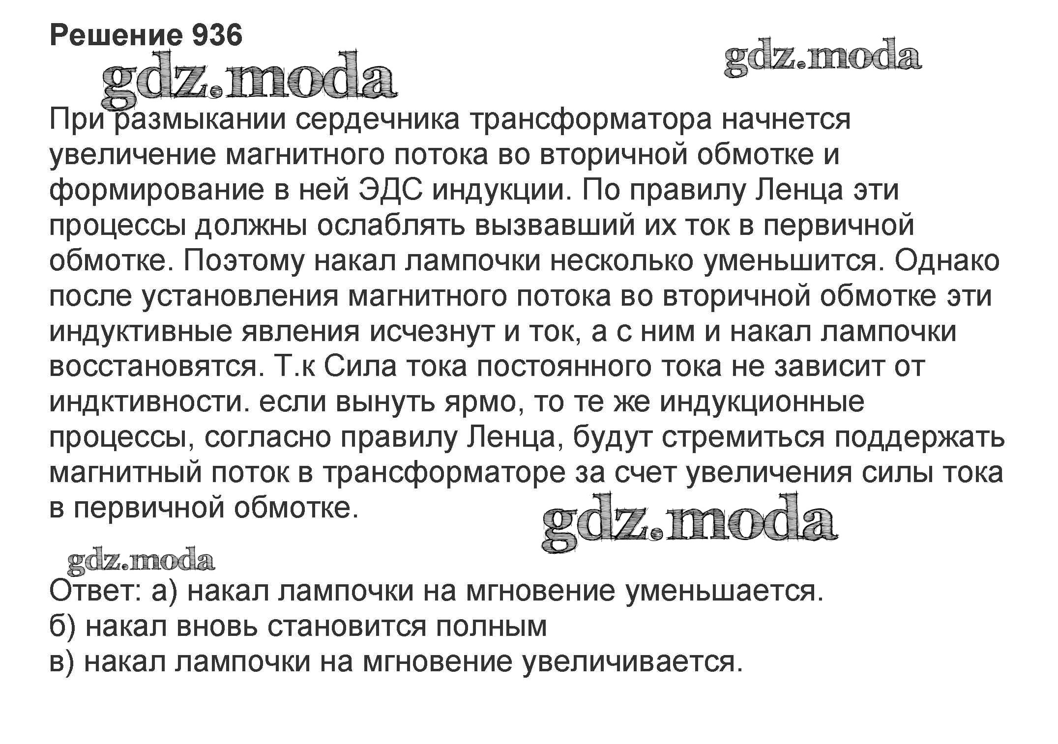 ОТВЕТ на задание № 936 Задачник по Физике 10-11 класс Рымкевич УМК