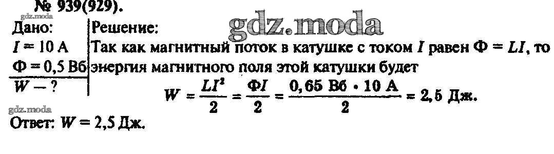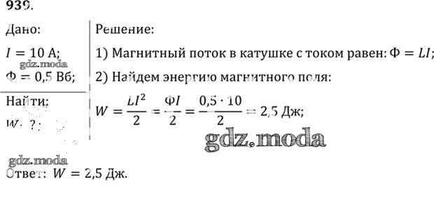 ОТВЕТ на задание № 939 Задачник по Физике 10-11 класс Рымкевич УМК
