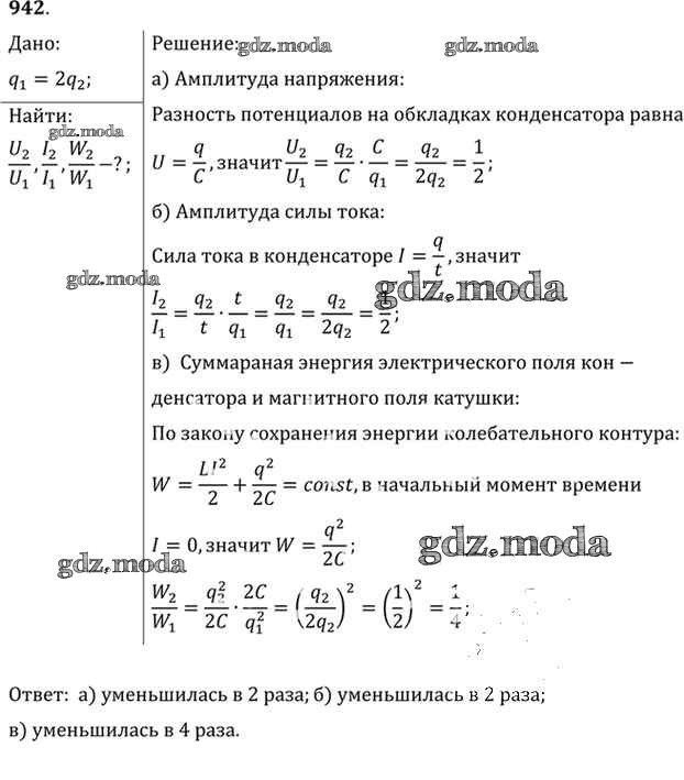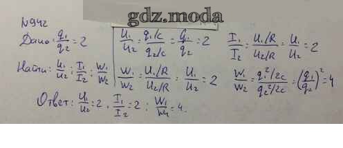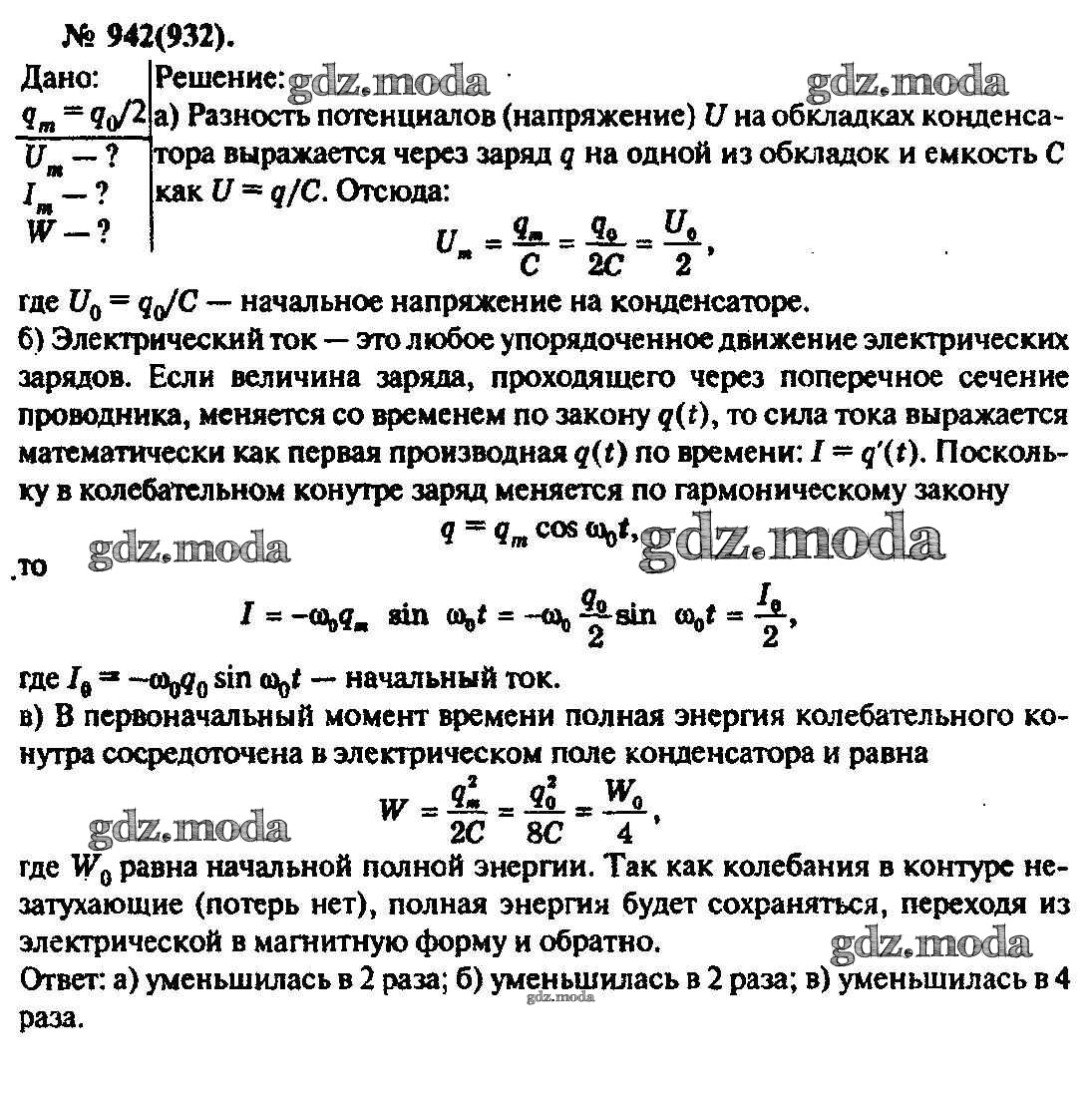 ОТВЕТ на задание № 942 Задачник по Физике 10-11 класс Рымкевич УМК