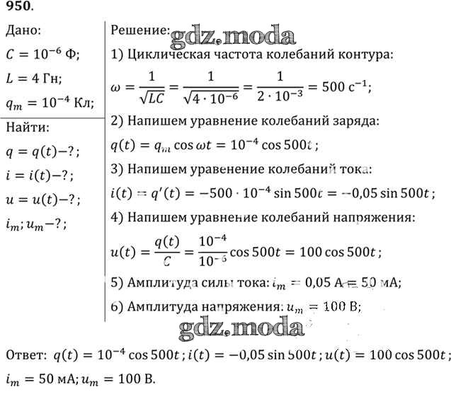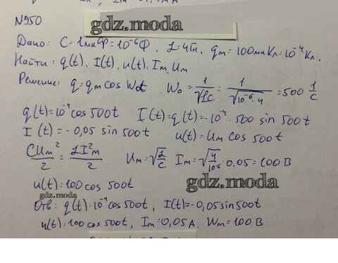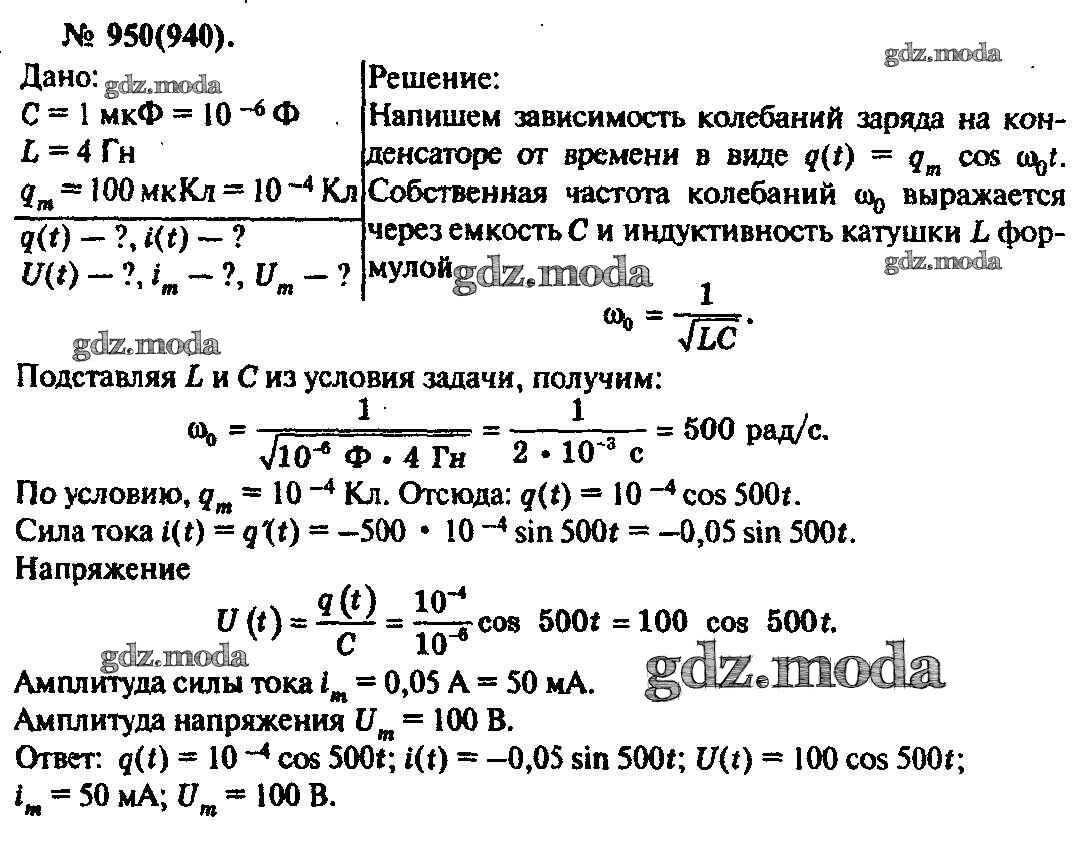 ОТВЕТ на задание № 950 Задачник по Физике 10-11 класс Рымкевич УМК