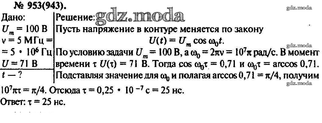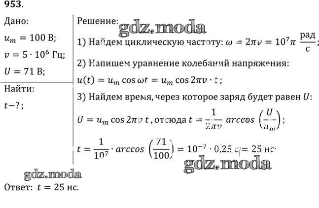 ОТВЕТ на задание № 953 Задачник по Физике 10-11 класс Рымкевич УМК
