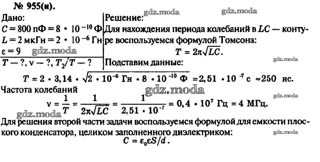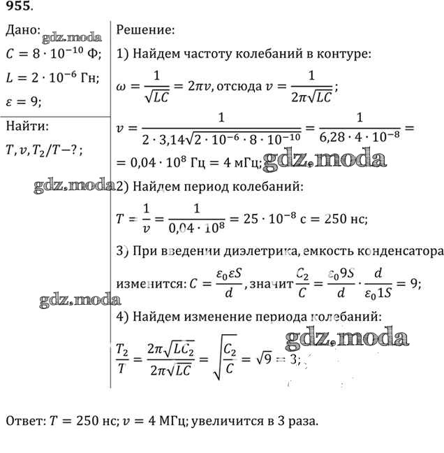 ОТВЕТ на задание № 955 Задачник по Физике 10-11 класс Рымкевич УМК