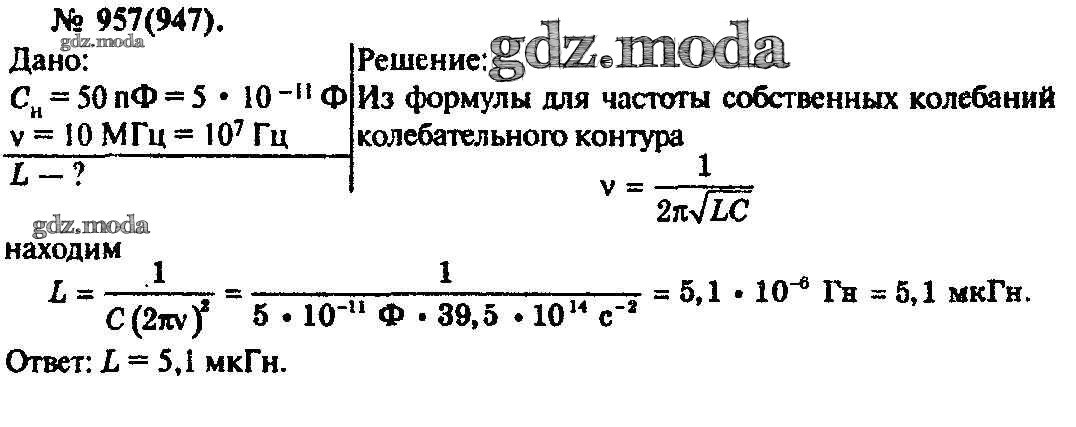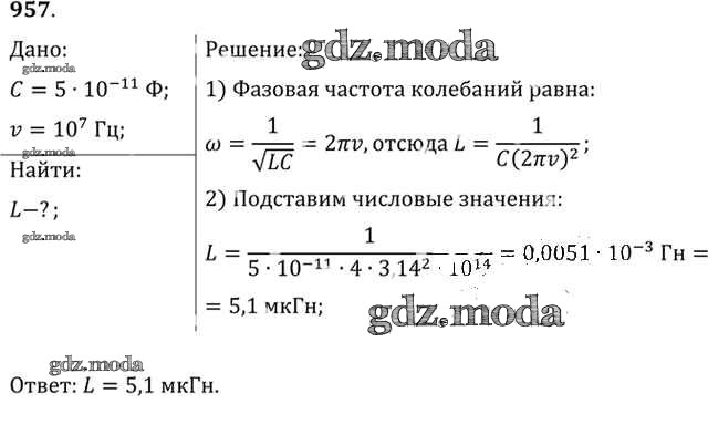 ОТВЕТ на задание № 957 Задачник по Физике 10-11 класс Рымкевич УМК