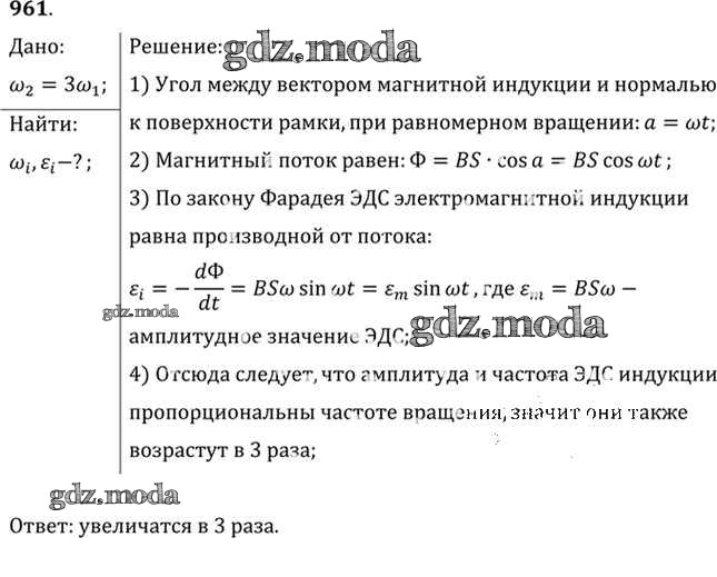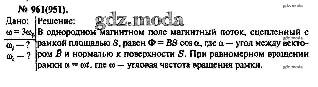 ОТВЕТ на задание № 961 Задачник по Физике 10-11 класс Рымкевич УМК