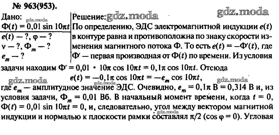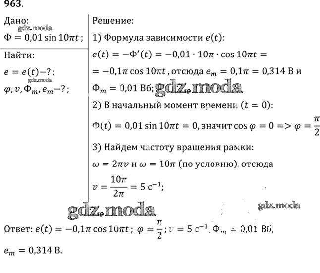 ОТВЕТ на задание № 963 Задачник по Физике 10-11 класс Рымкевич УМК