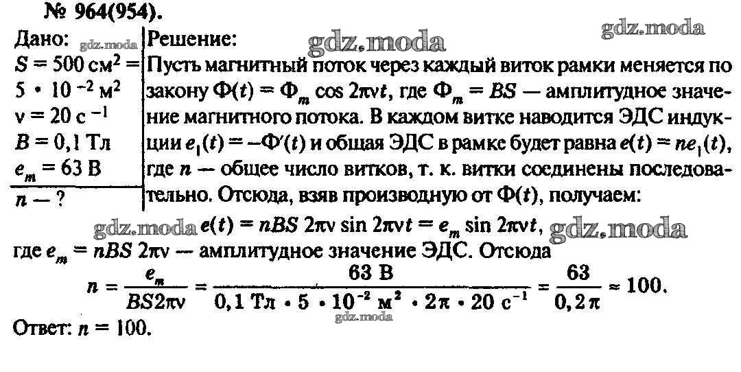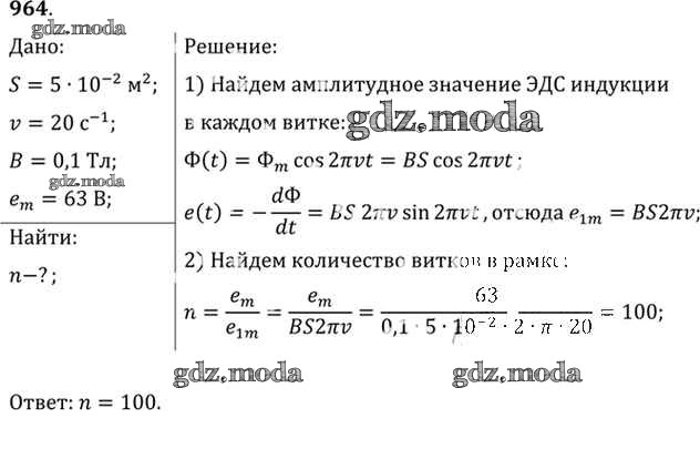 ОТВЕТ на задание № 964 Задачник по Физике 10-11 класс Рымкевич УМК