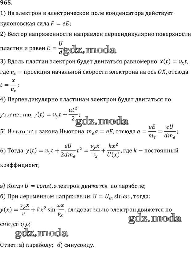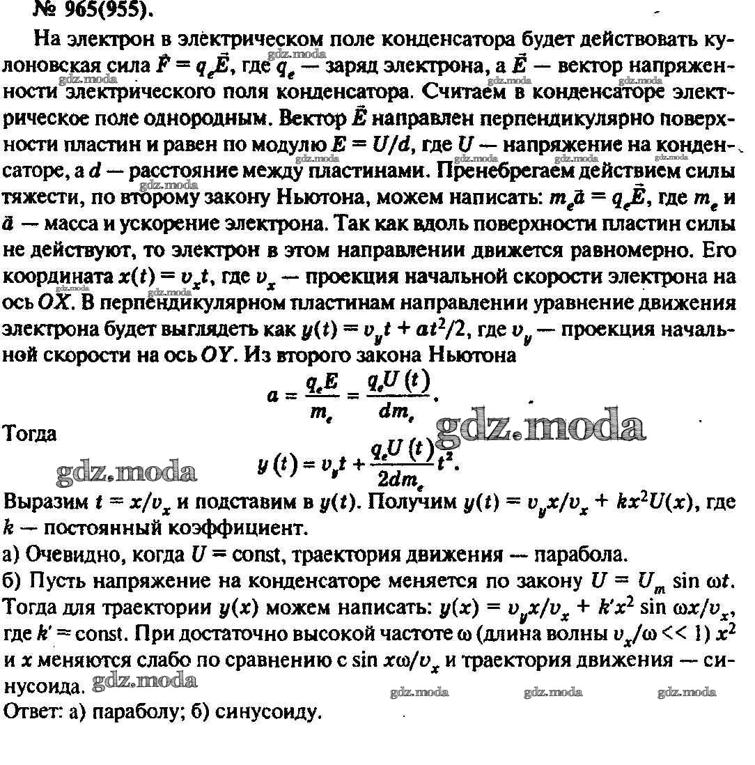 ОТВЕТ на задание № 965 Задачник по Физике 10-11 класс Рымкевич УМК