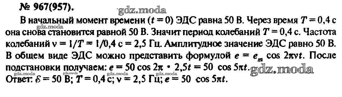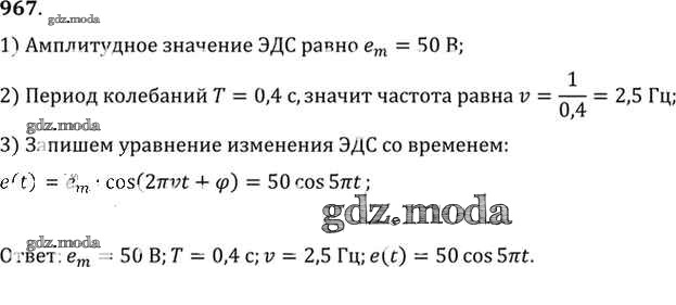 ОТВЕТ на задание № 967 Задачник по Физике 10-11 класс Рымкевич УМК