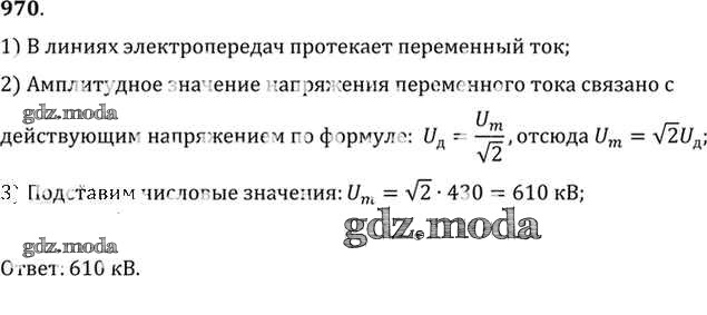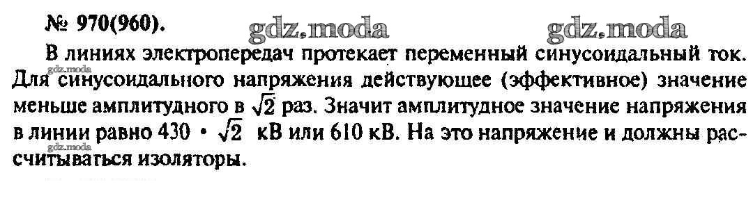 ОТВЕТ на задание № 970 Задачник по Физике 10-11 класс Рымкевич УМК