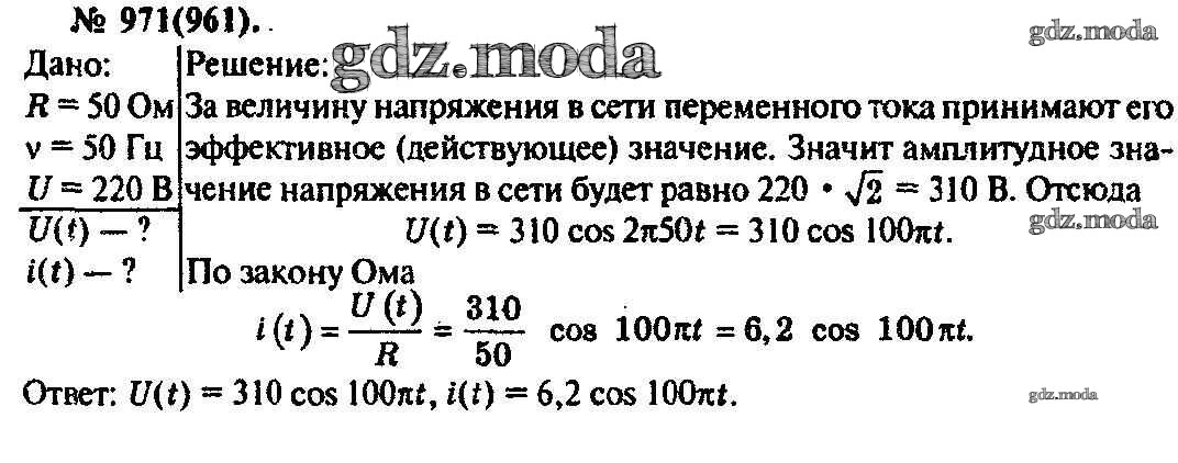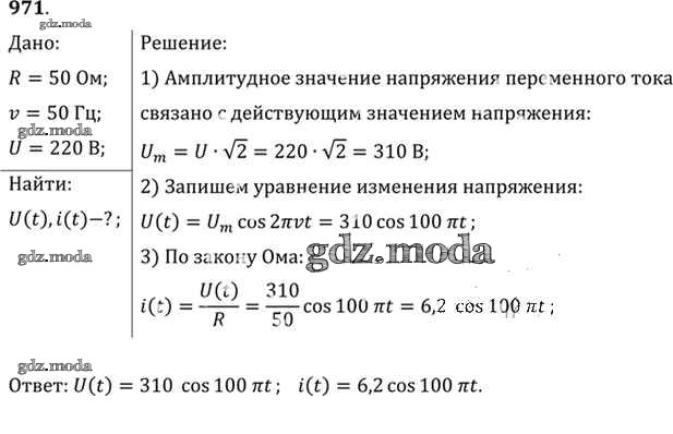 ОТВЕТ на задание № 971 Задачник по Физике 10-11 класс Рымкевич УМК