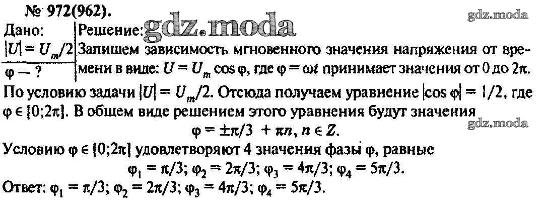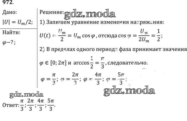 ОТВЕТ на задание № 972 Задачник по Физике 10-11 класс Рымкевич УМК