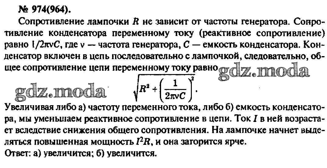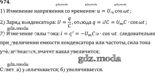 ОТВЕТ на задание № 974 Задачник по Физике 10-11 класс Рымкевич УМК