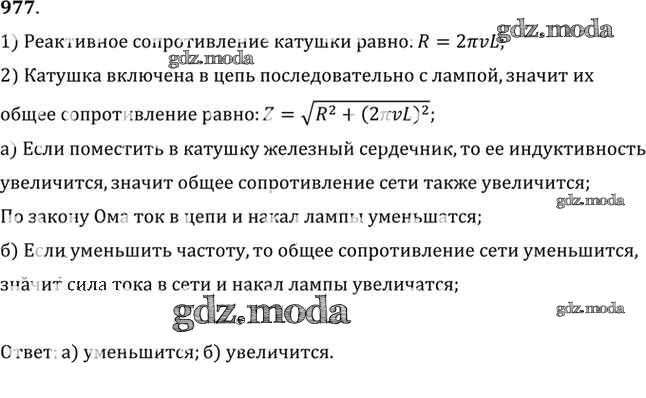 ОТВЕТ на задание № 977 Задачник по Физике 10-11 класс Рымкевич УМК