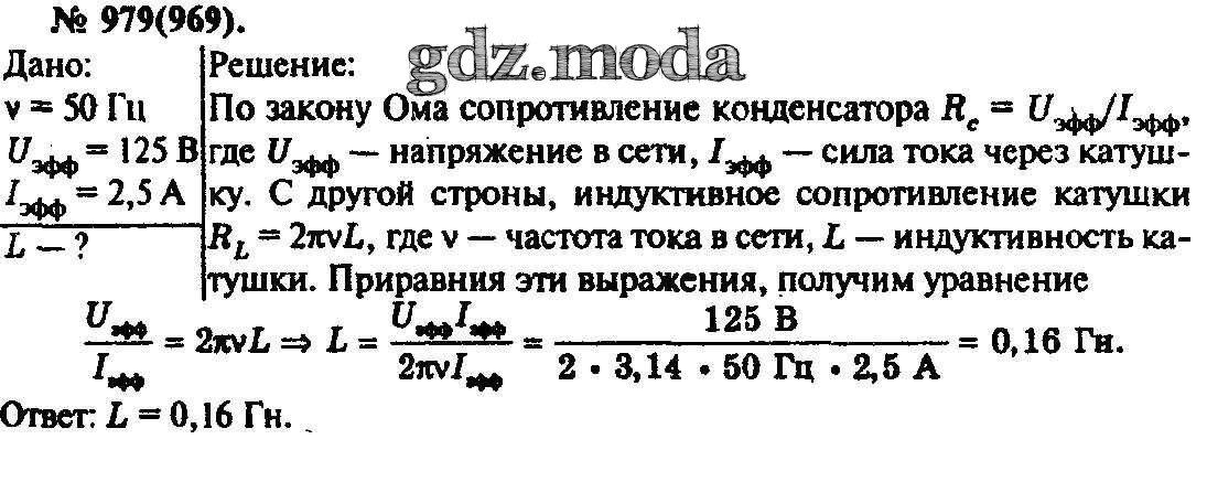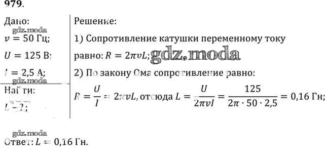 ОТВЕТ на задание № 979 Задачник по Физике 10-11 класс Рымкевич УМК