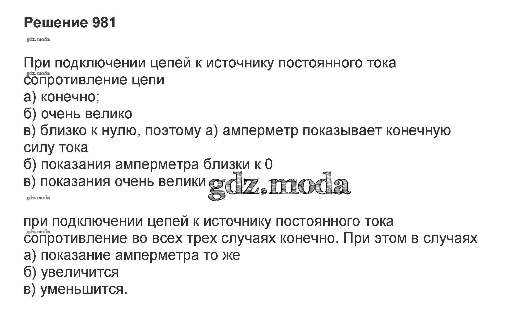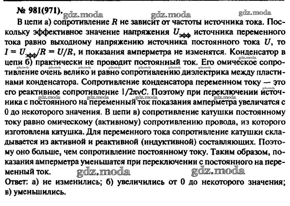 ОТВЕТ на задание № 981 Задачник по Физике 10-11 класс Рымкевич УМК