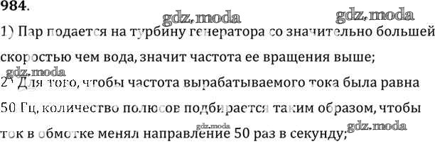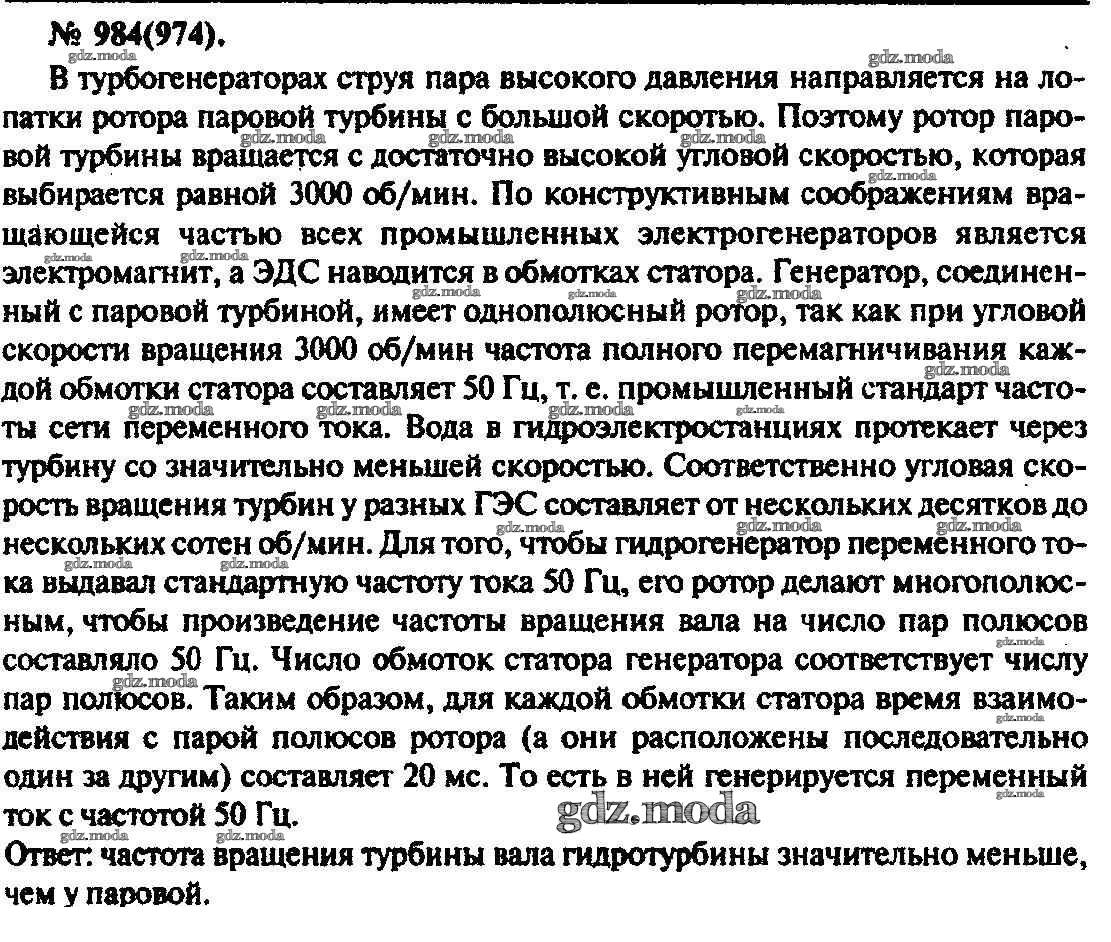 ОТВЕТ на задание № 984 Задачник по Физике 10-11 класс Рымкевич УМК