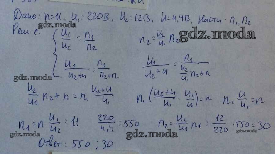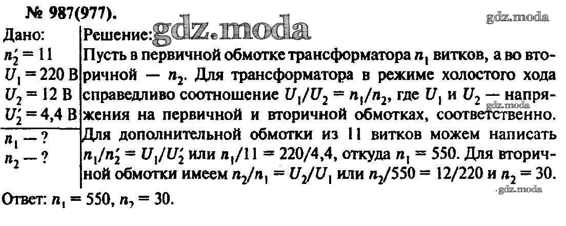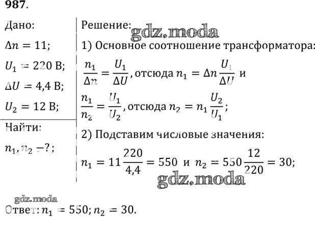 ОТВЕТ на задание № 987 Задачник по Физике 10-11 класс Рымкевич УМК