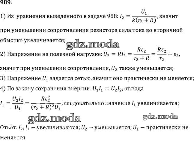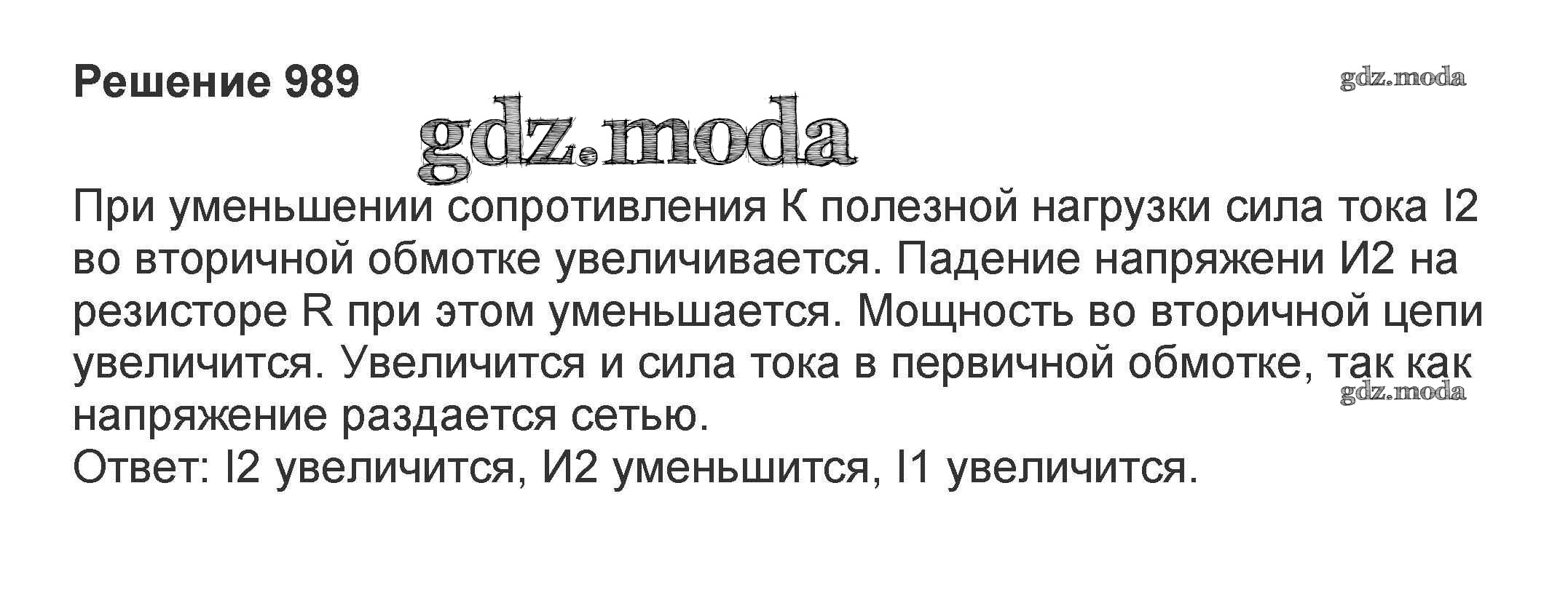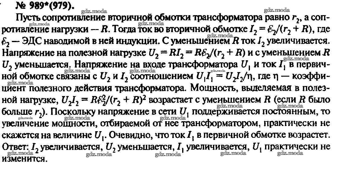 ОТВЕТ на задание № 989 Задачник по Физике 10-11 класс Рымкевич УМК