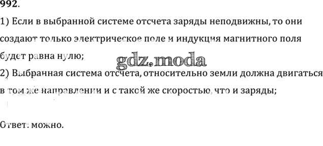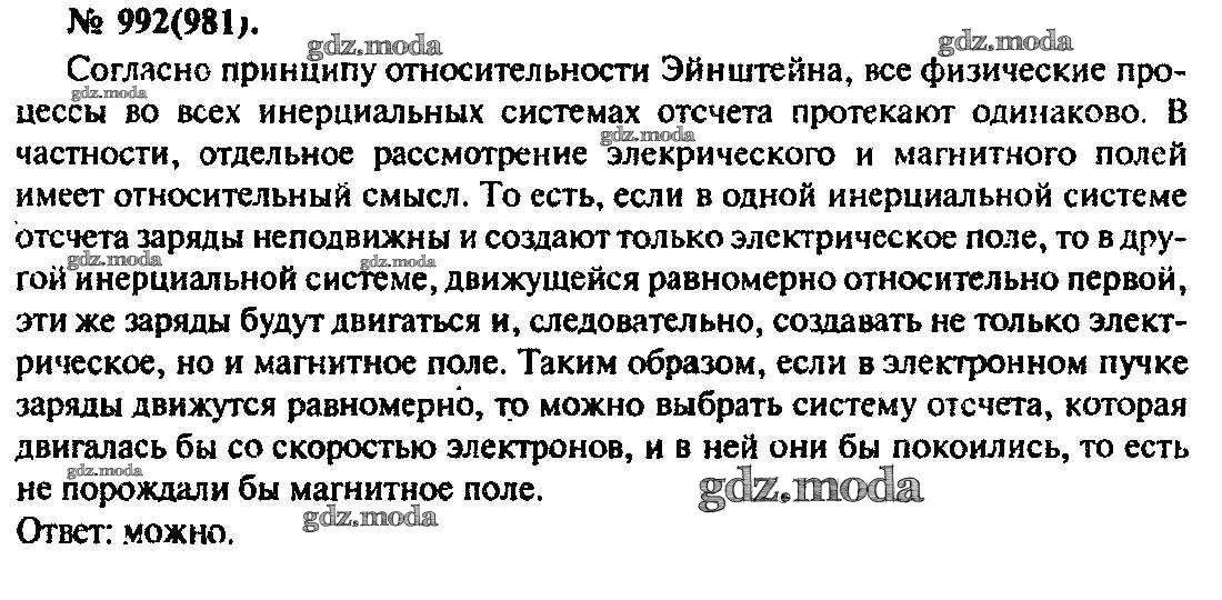 ОТВЕТ на задание № 992 Задачник по Физике 10-11 класс Рымкевич УМК