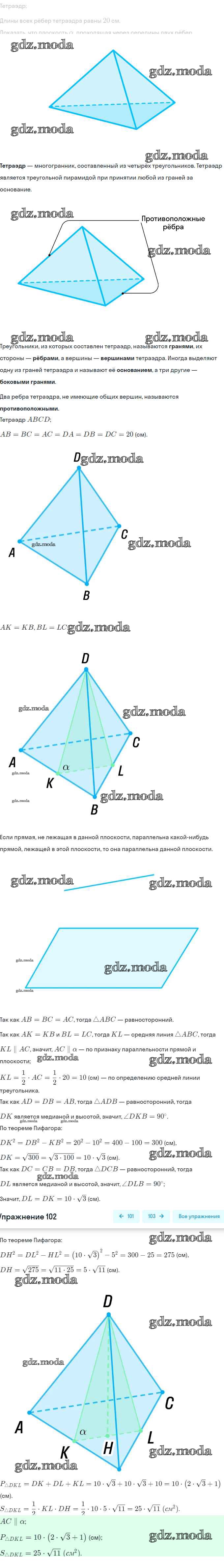 ГДЗ решение к заданию № 102 Геометрия 10-11 класс Атанасян Просвещение, Просвещение 2015, 2023 Базовый и углубленный уровень ФГОС бесплатно на гдз.мода!