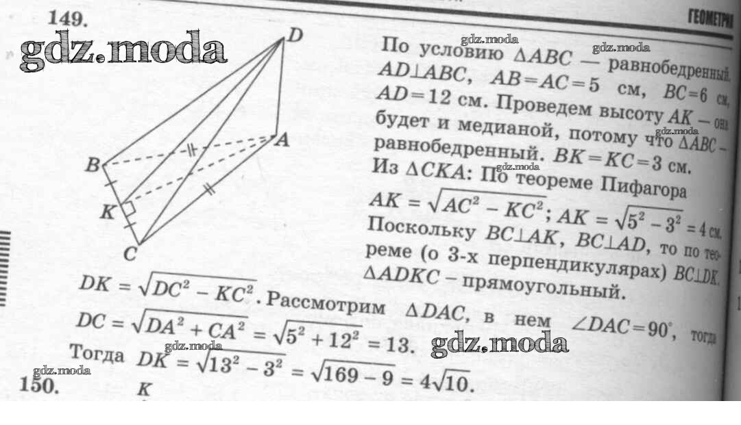 ГДЗ решение к заданию № 149 Геометрия 10-11 класс Атанасян Просвещение, Просвещение 2015, 2023 Базовый и углубленный уровень ФГОС бесплатно на гдз.мода!