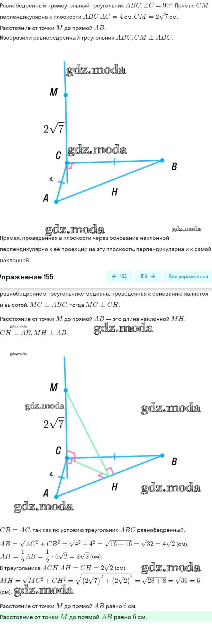 ГДЗ решение к заданию № 155 Геометрия 10-11 класс Атанасян Просвещение, Просвещение 2015, 2023 Базовый и углубленный уровень ФГОС бесплатно на гдз.мода!
