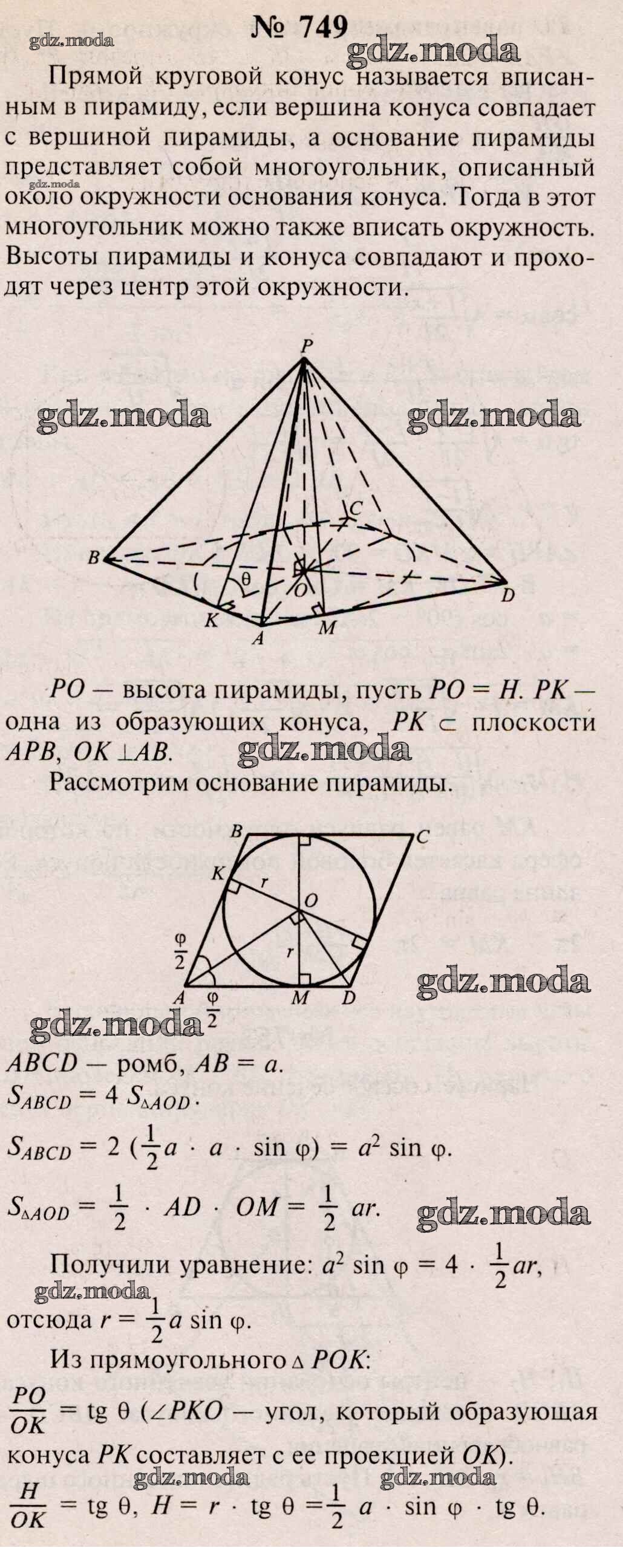 ОТВЕТ на задание № 749 Учебник по Геометрии 10-11 класс Атанасян Базовый и углубленный уровень