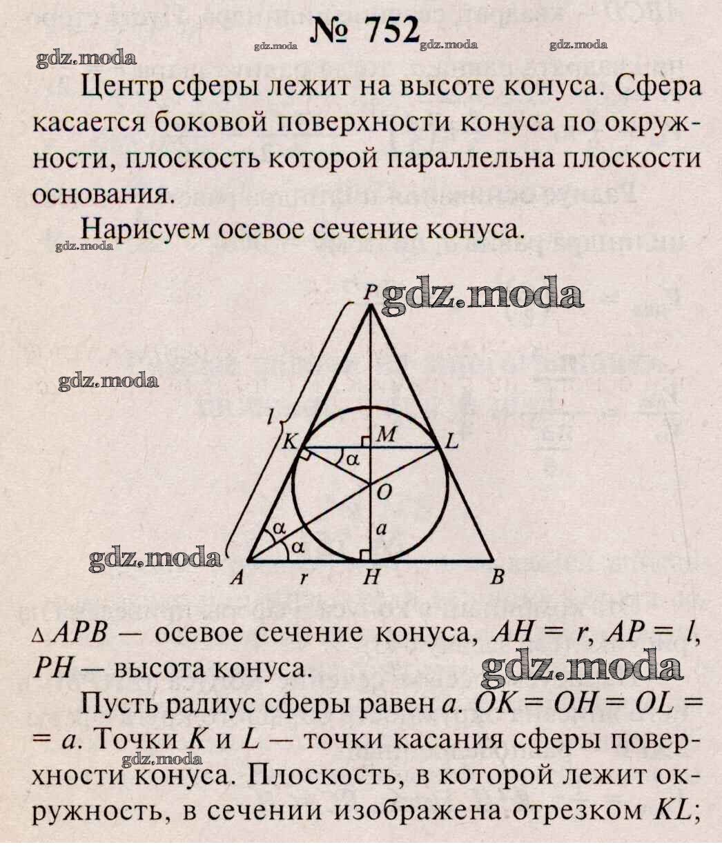 ОТВЕТ на задание № 752 Учебник по Геометрии 10-11 класс Атанасян Базовый и углубленный уровень