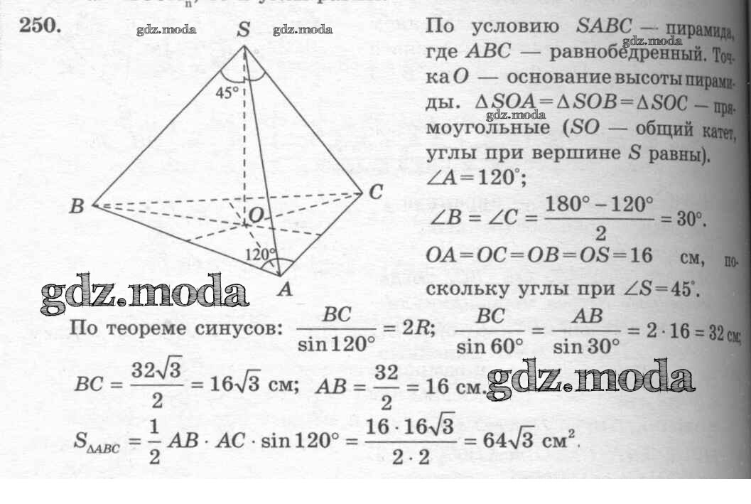 ГДЗ решение к заданию № 250 Геометрия 10-11 класс Атанасян Просвещение, Просвещение 2015, 2023 Базовый и углубленный уровень ФГОС бесплатно на гдз.мода!