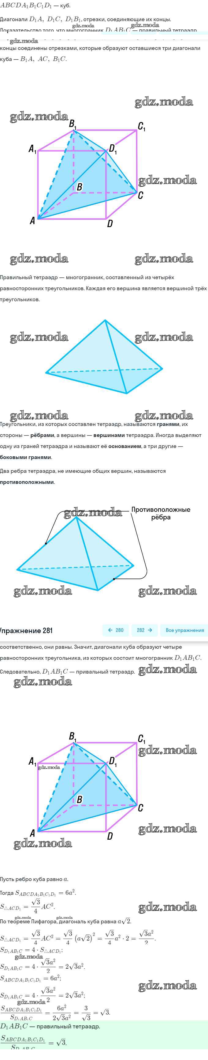ГДЗ решение к заданию № 281 Геометрия 10-11 класс Атанасян Просвещение, Просвещение 2015, 2023 Базовый и углубленный уровень ФГОС бесплатно на гдз.мода!