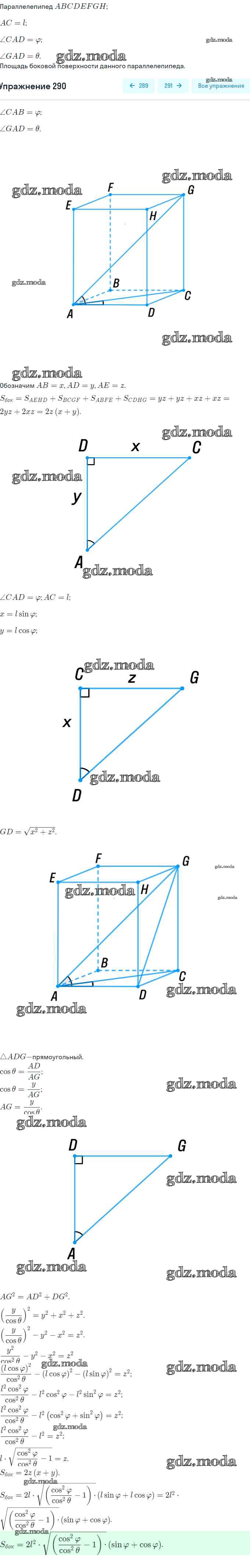 ГДЗ решение к заданию № 290 Геометрия 10-11 класс Атанасян Просвещение, Просвещение 2015, 2023 Базовый и углубленный уровень ФГОС бесплатно на гдз.мода!