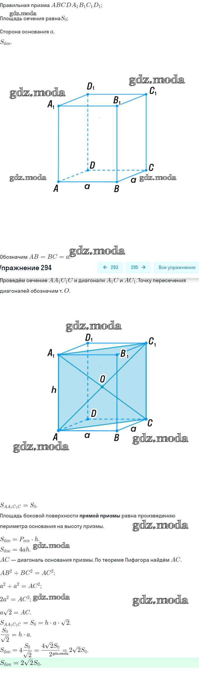 ГДЗ решение к заданию № 294 Геометрия 10-11 класс Атанасян Просвещение, Просвещение 2015, 2023 Базовый и углубленный уровень ФГОС бесплатно на гдз.мода!