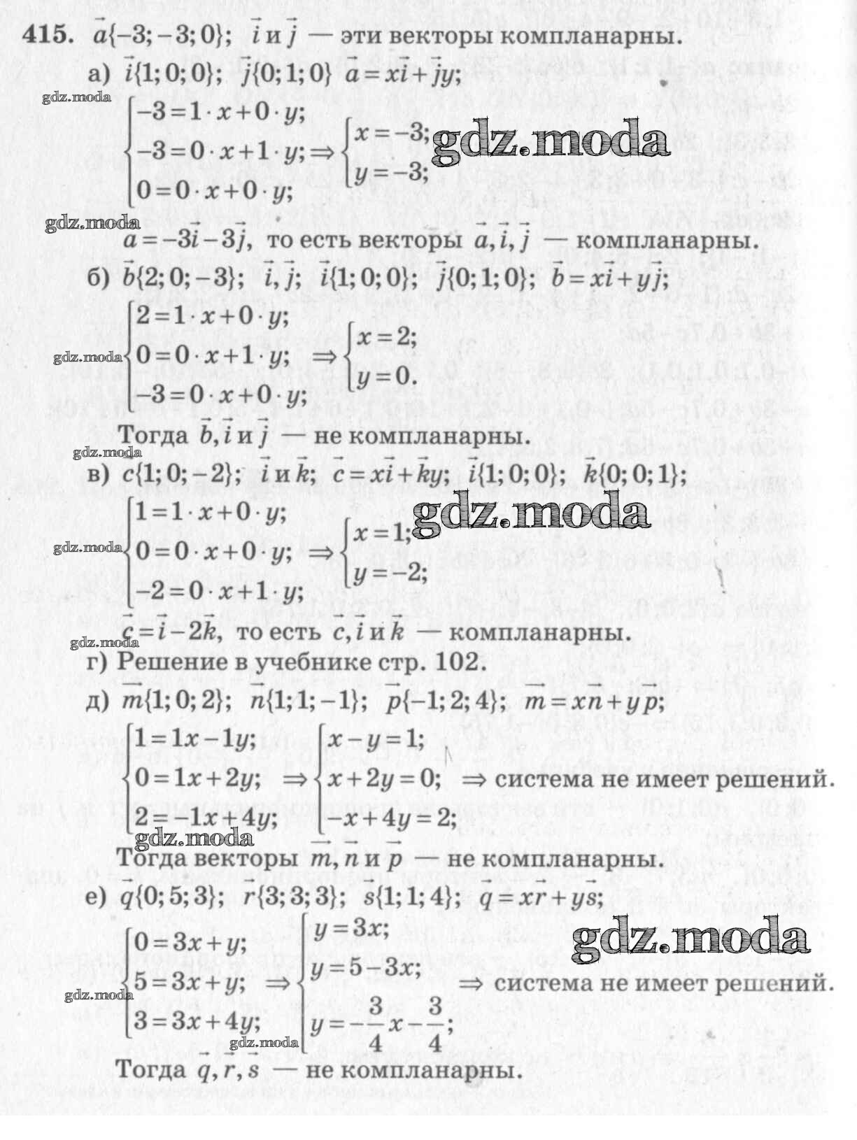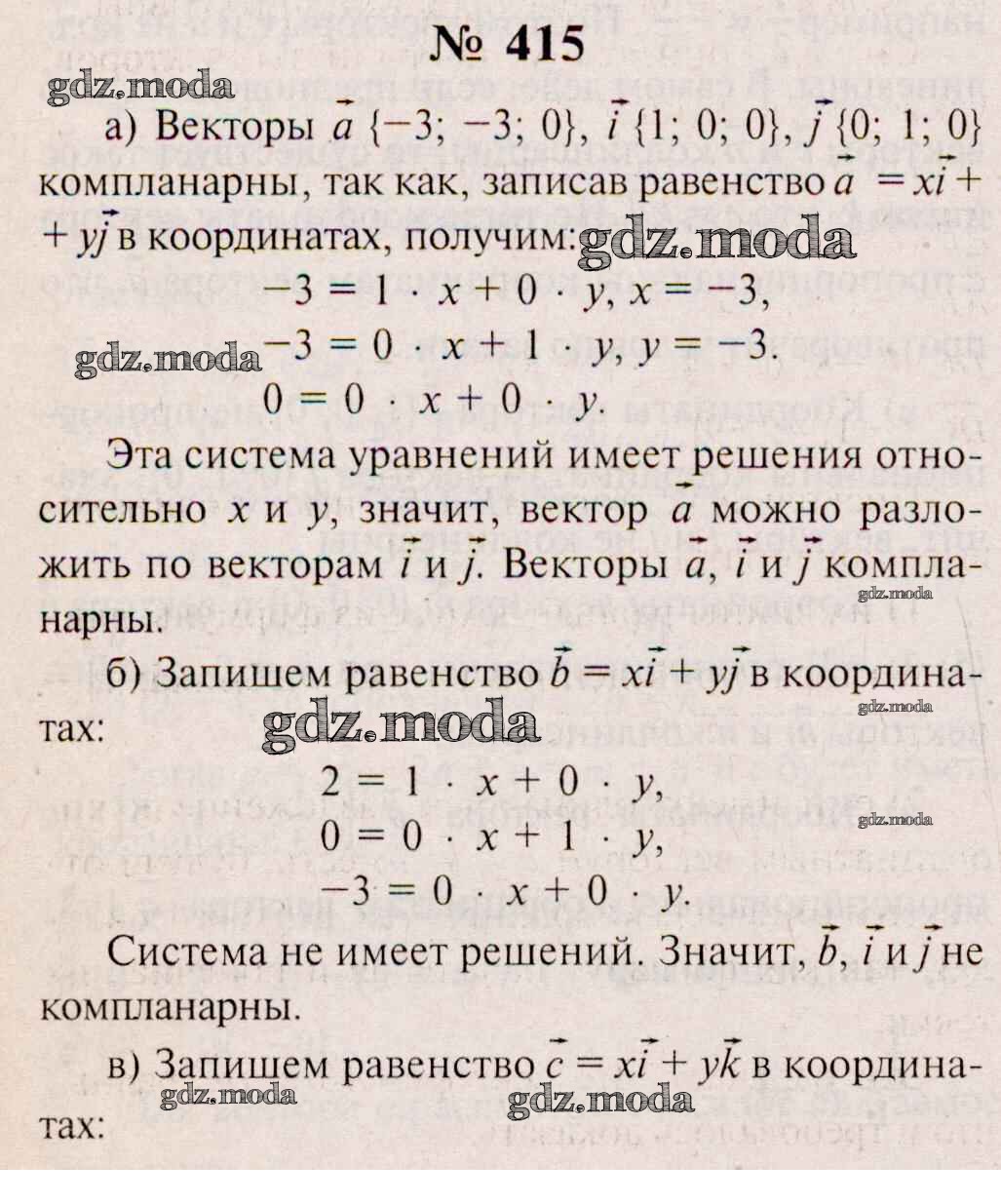ОТВЕТ на задание № 415 Учебник по Геометрии 10-11 класс Атанасян Базовый и углубленный уровень