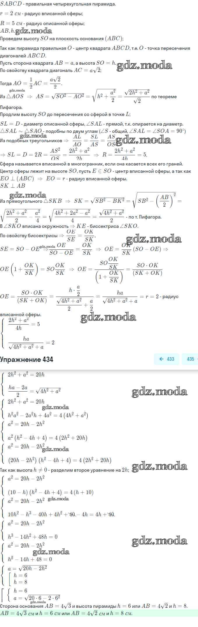 ОТВЕТ на задание № 434 Учебник по Геометрии 10-11 класс Атанасян Базовый и углубленный уровень