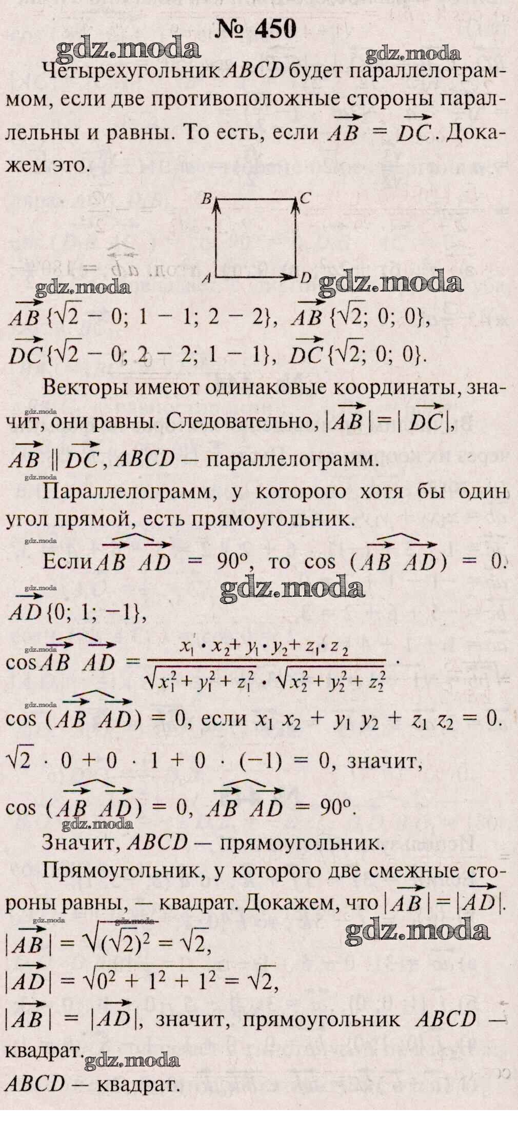 ОТВЕТ на задание № 450 Учебник по Геометрии 10-11 класс Атанасян Базовый и углубленный уровень