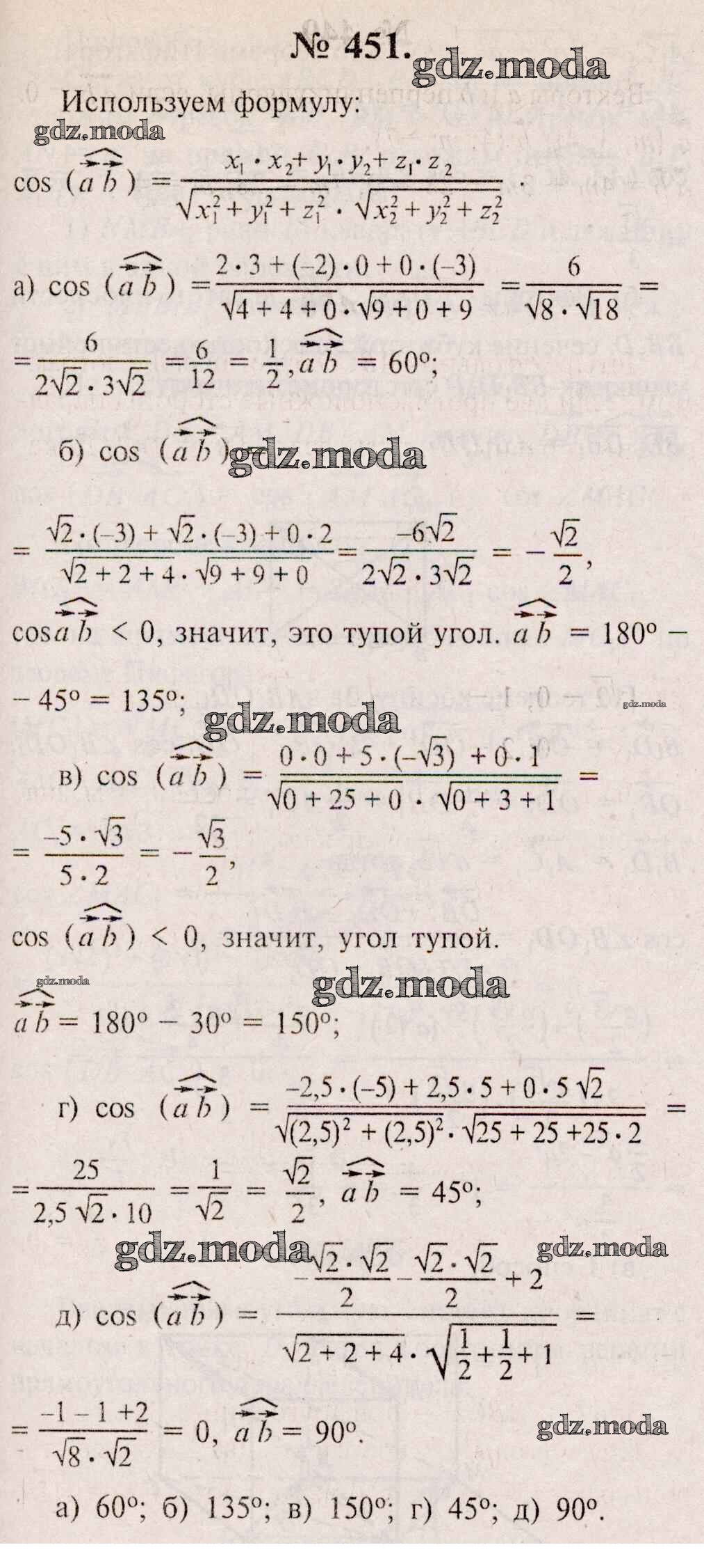 ОТВЕТ на задание № 451 Учебник по Геометрии 10-11 класс Атанасян Базовый и углубленный уровень