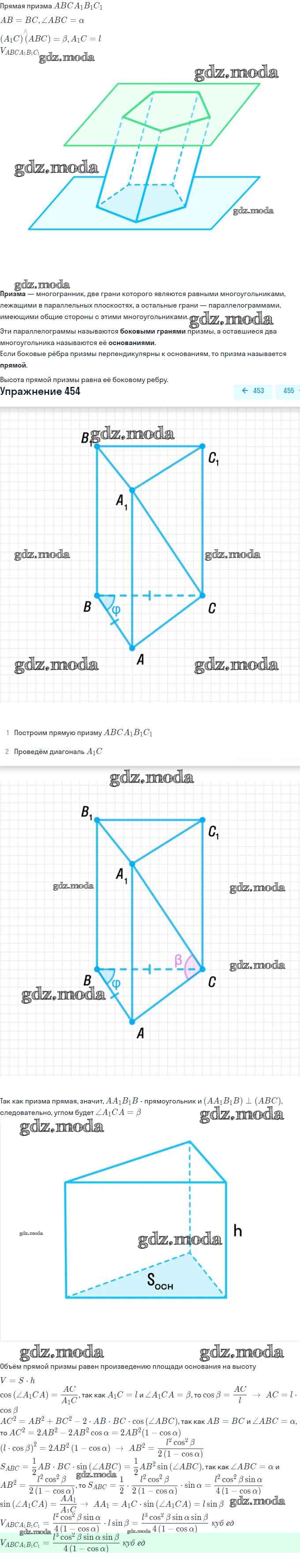ОТВЕТ на задание № 454 Учебник по Геометрии 10-11 класс Атанасян Базовый и углубленный уровень
