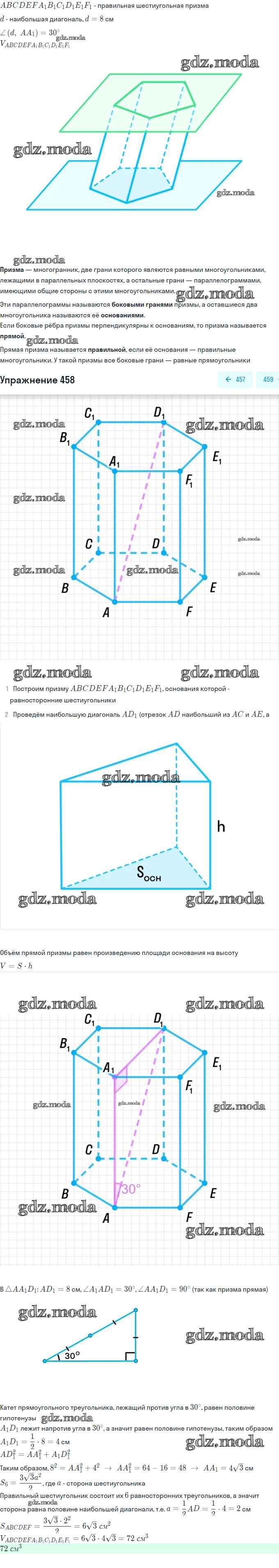 ОТВЕТ на задание № 458 Учебник по Геометрии 10-11 класс Атанасян Базовый и углубленный уровень