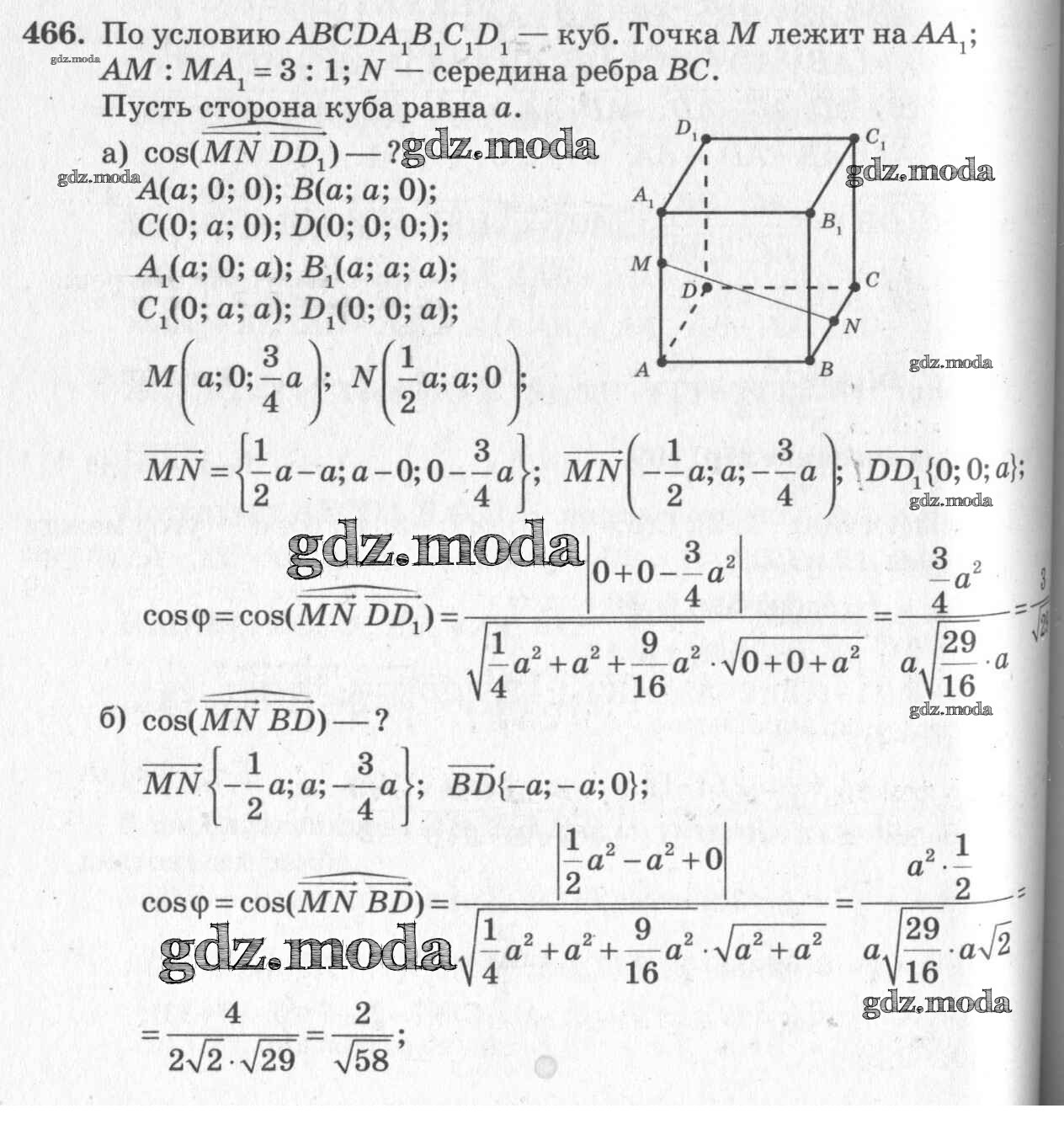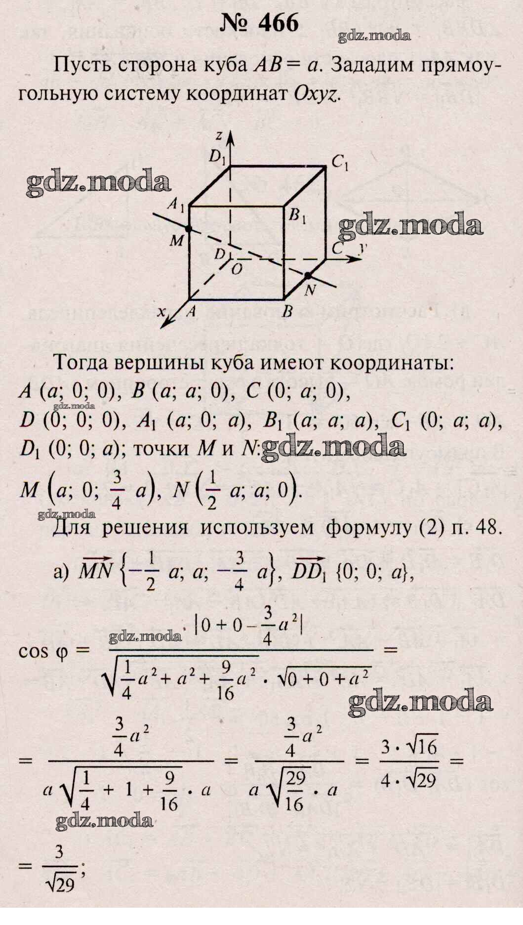 ОТВЕТ на задание № 466 Учебник по Геометрии 10-11 класс Атанасян Базовый и углубленный уровень