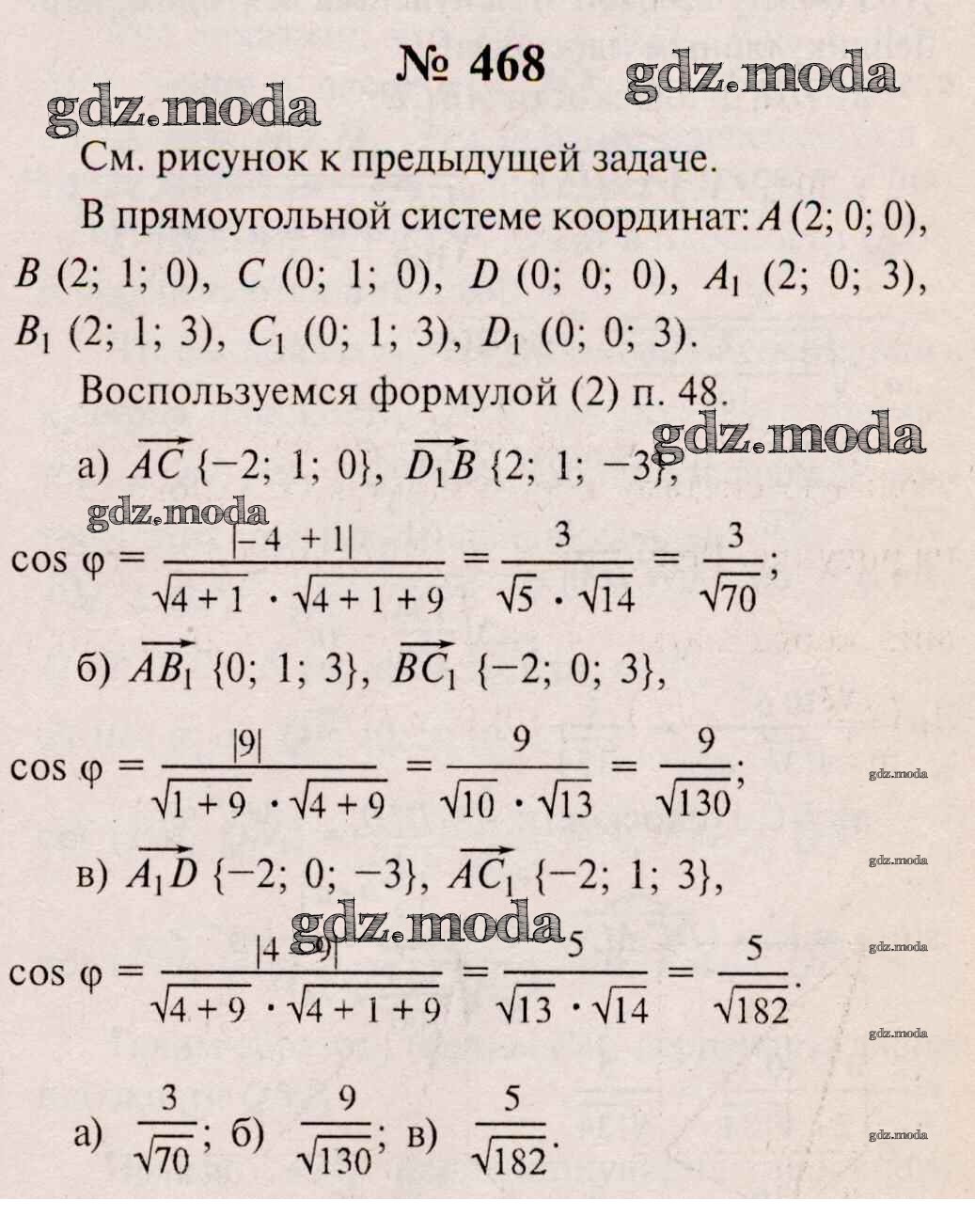 ОТВЕТ на задание № 468 Учебник по Геометрии 10-11 класс Атанасян Базовый и углубленный уровень