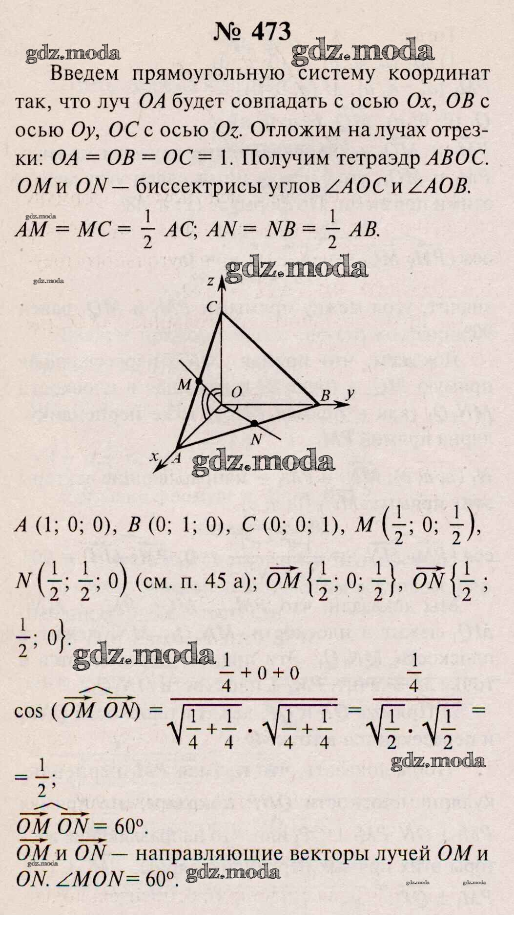 ОТВЕТ на задание № 473 Учебник по Геометрии 10-11 класс Атанасян Базовый и углубленный уровень